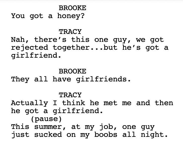 But we also understand that Tracy really does love Brooke - even if she didn't literally say as much, it's readily apparent from the ways in which she starts taking on Brooke's character traits for better (she becomes much more confident) or worse (she becomes much more casually cruel, as when giving Tony notes on one of his short stories).